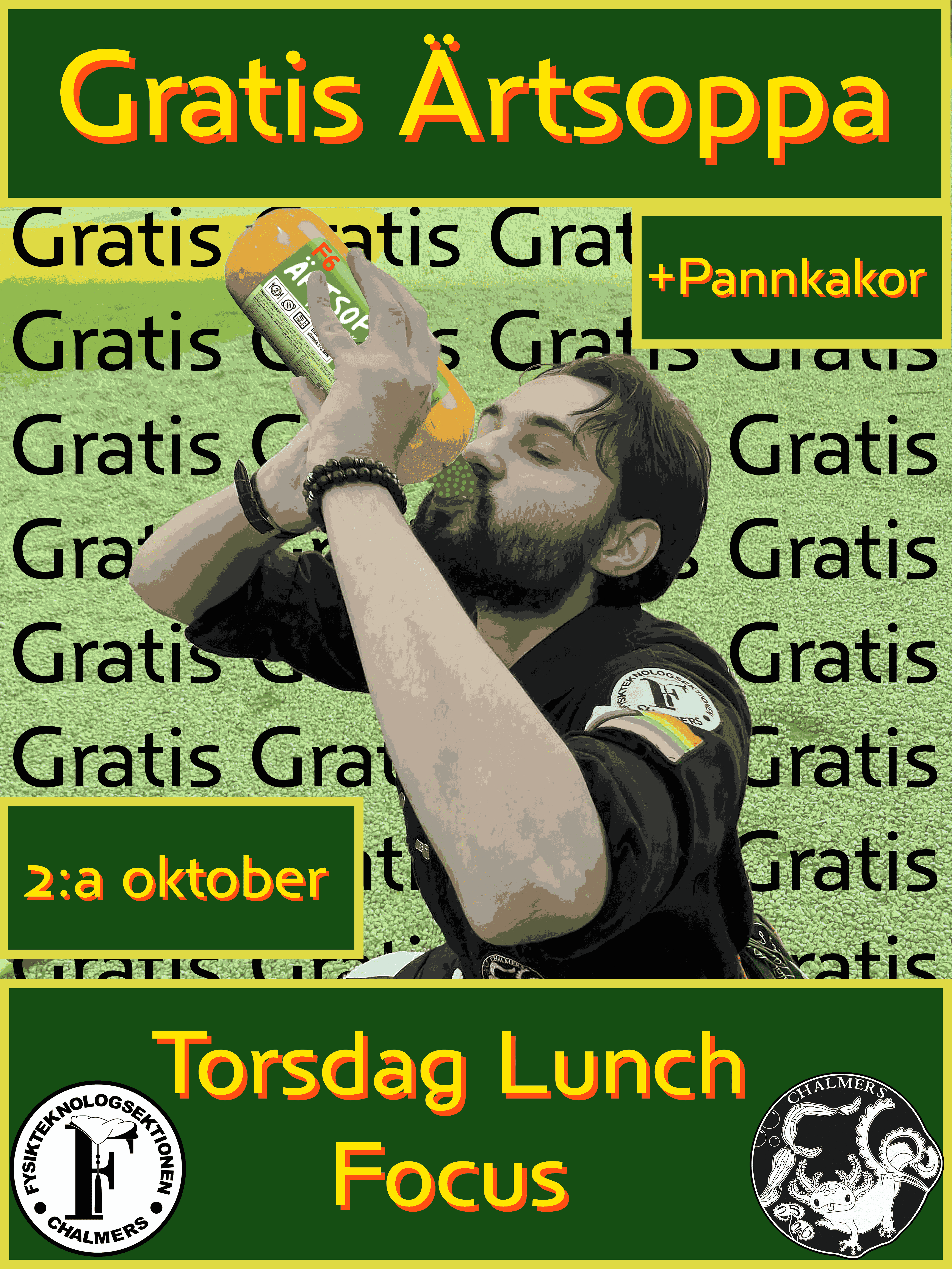 På torsdag, 2:a oktober bjuder F6 på gratis lunch! Lämna matlådan hemma och kom och käka ärtsoppa och pannkakor på Focus istället! Vi ses i dimman 🖤